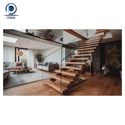 Diseño de escalera de madera moderna Escalones de escalera de madera maciza para interiores con barandilla de vidrio para casa de Villa