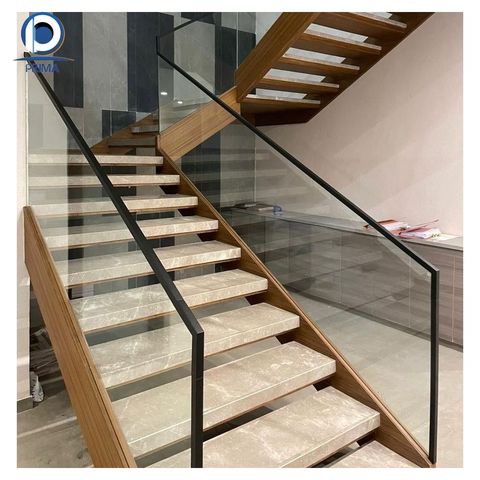 Escalera de vidrio templado con pasamanos de acero inoxidable Diseño moderno de escalera flotante